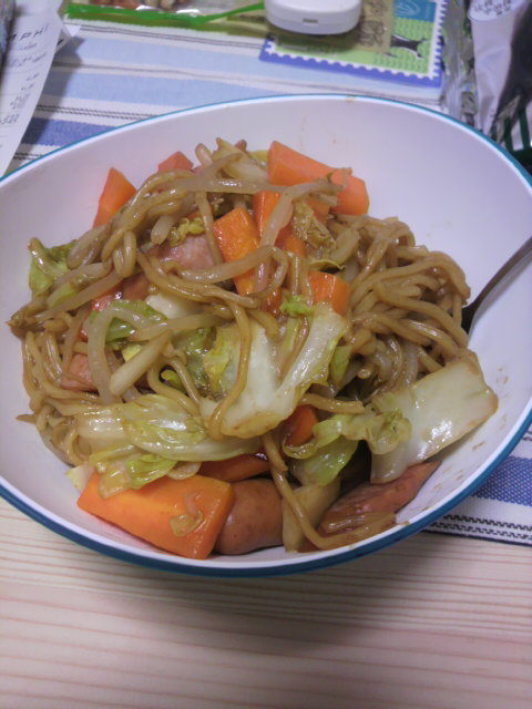 焼きそば三人分一気に作ったもんだから炒めるの疲れた